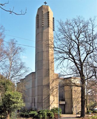 L'église originale de 1903 a subi des dommages considérables pendant la Seconde Guerre mondiale et a été entièrement reconstruite en 1969.