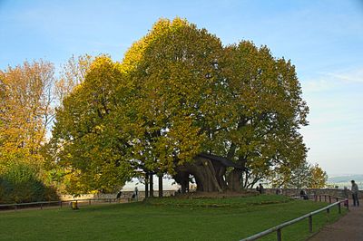 L'arbre se dresse juste a l'exterieur de l'entree principale du chateau, ce qui le rend facile d'acces lors de la visite des terrains du chateau. Planifiez une visite par temps sec pour profiter pleinement de l'espace sous les branches.