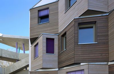 Chaque unite residencielle dispose de niches d'etude specialisees integrees dans les facades prefabriquees qui servent d'espaces de travail distincts pour les residents. Ces petites surfaces de travail sont integrees directement dans les facades des batiments et offrent des espaces de retraite individuelle pour l'apprentissage.