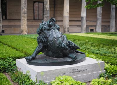 Hercules and the Nemean Lion, Sculpture en bronze au Kolonnadenhof, Allemagne.