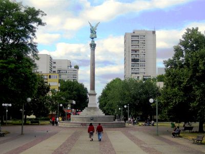 La Colonne de la Paix de Berlin se dresse sur la place Mehringplatz comme monument commémoratif surmonté d'une statue de bronze de Victoire. La base combine le marbre et le granit et accueille plusieurs sculptures représentant différents concepts liés à la paix et à la victoire historique.