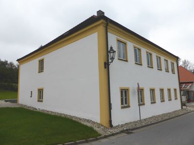 Ehemaliger Pfarrhof, zweigeschossiger Massivbau mit Putzgliederung und Walmdach, 17. Jahrhundert