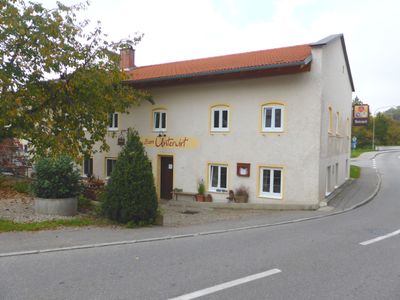 Gasthof Unterwirt, zweigeschossiger Satteldachbau mit Vorschussgiebeln und Putzgliederung, 1. Drittel 18. Jahrhundert