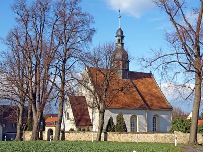 Kirche und Kirchhof Buchholz; Kirche mit Kirchhof, Einfriedungsmauer mit zwei rundbogigen Eingangstoren, Denkmal für die Gefallenen des Ersten Weltkrieges und drei Reihen Soldatengräber Zweiter Weltkrieg Buchholz