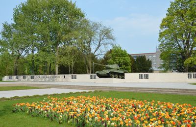 Le Cimetière Militaire Soviétique contient des structures mémorielles, des tombes marquées et des plaques commémoratives réparties sur les terrains funéraires.