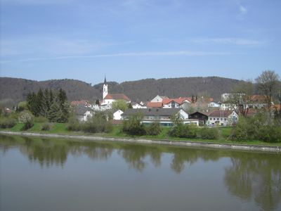 Un pont en béton construit en 1927 traverse la rivière Inn, reliant Marktl aux routes de transport entre Munich et Simbach.