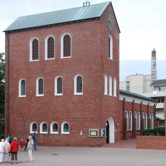 La Christuskirche présente une construction en briques avec une architecture ecclésiastique caractéristique du nord de l'Allemagne et un clocher remarquable.
