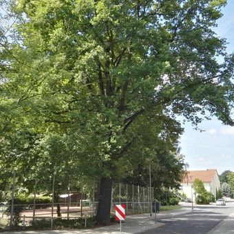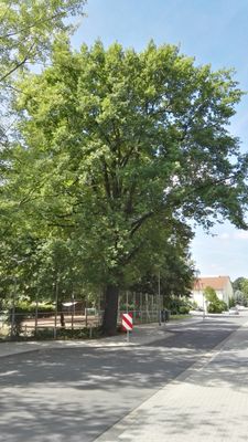Stieleiche (Quercus robur) in Senftenberg im Garten des Kindergartens Glück-Auf-Straße, nördlich vom Gebäude, bildet mit den Bäumen 0100-5, 0100-7, 0100-8, 0100-9 eine Reihe