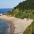 La bande côtière de 300 mètres alterne entre sections de sable doré et zones de galets lisses le long des eaux du Golfe de Gascogne.