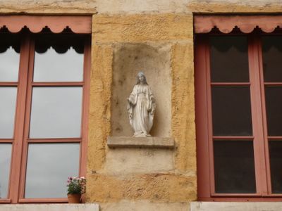 Vierge rue Saint-Georges, Statue religieuse dans le quartier Saint-Georges, Lyon, France.