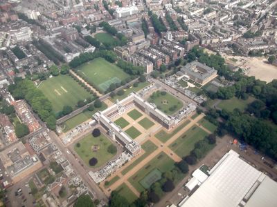 L'Hôpital Royal de Chelsea s'étend sur 27 hectares avec des bâtiments en brique rouge et des jardins le long de la Tamise.