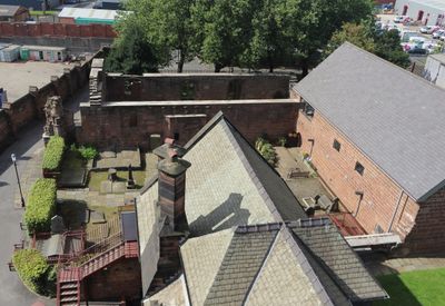 Les structures en pierre du Prieuré de Birkenhead comprennent une salle capitulaire, des murs anciens et la Tour Sainte-Marie surplombant la Mersey.