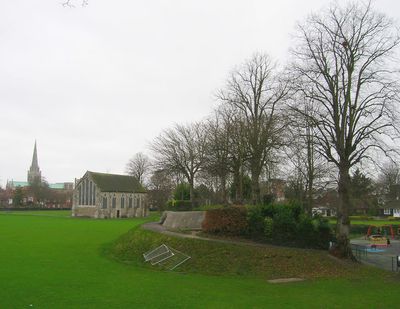 Le Château de Chichester est une fortification à motte et basse-cour implantée à Priory Park qui affiche les caractéristiques défensives typiques de l'architecture normande. Le monticule surélevé avec ses fossés environnants se dresse au nord-est des remparts de la ville et demeure visible comme une structure de terre au sein du parc moderne.