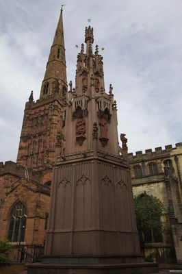 La Croix de Coventry est un monument en pierre situe pres de l'eglise Holy Trinity avec plusieurs niveaux presentant des statues de rois et de saints dans des niches sculptees. La structure a ete relocalisee en 2023 a une nouvelle position et comprend maintenant des fenetres colorees qui racontent des histoires du passe de la ville.