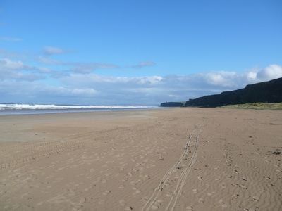 La plage est facilement accessible avec un parking gratuit juste à côté du sable ou par un tunnel sous les falaises. Les visiteurs doivent faire attention aux panneaux concernant les conditions de conduite sur le sable mou et noter que les chiens ont des restrictions diurnes de juin à septembre.