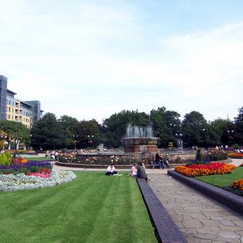 Les Jardins de la Reine occupent 4 hectares au centre de Hull, avec de vastes pelouses, des massifs de plantes vivaces et deux grands bassins.