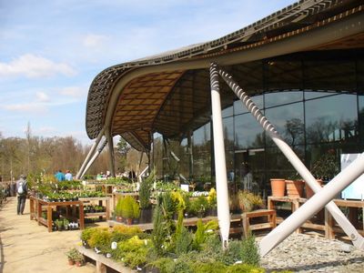 Le Savill Building est un centre d'accueil contemporain situé dans Windsor Great Park avec un toit courbe caractéristique fait de lames de bois entrecroisées. La structure accueille des espaces d'exposition, une boutique, un restaurant avec sièges extérieurs et se connecte directement au jardin Savill adjacent.
