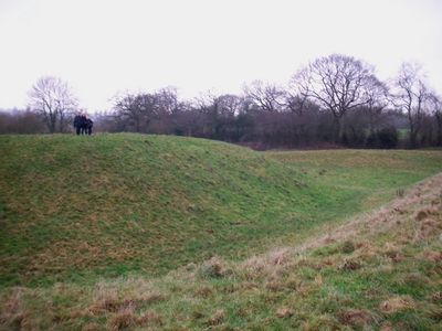Deux fossés escarpés flanquent la motte sur ses côtés nord et sud pour la protéger. Ces canaux etaient inondés par la rivière lors des marées hautes, créant une barrière d'eau supplémentaire.