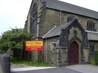 L'église Saint-Jean se situe aux coordonnées 53.70035 de latitude et -2.27342 de longitude, ses vitraux originaux se trouvent maintenant à la cathédrale de Vancouver.