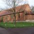 L'église Saint-Paul présente des murs en briques rouges, une abside, des fenêtres en lancette et des fermes de toit en pin résineux.