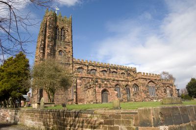 L'église St Mary and All Saints est un édifice religieux gothique à Great Budworth construit en grès rouge avec des sections achevées sur plusieurs siècles. Sa structure comprend une large nef avec des fenêtres hautes pour l'éclairage, des collatéraux longeant les deux murs, et un choeur encadré par de petites chapelles latérales.