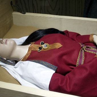 La zone centrale présente une sépulture sur lit de haute importance contenant une femme parée de pendentifs en or, de pierres précieuses et de décorations en fer.