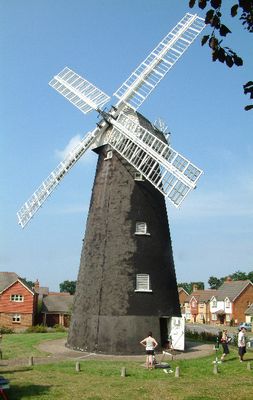 Le Shirley Windmill est un moulin-tour en brique de cinq étages situé dans le district londonien de Croydon, avec des machines victoriennes d'origine du 19e siècle encore intactes. Le bâtiment contient deux paires de meules et d'autres mécanismes qui montrent comment le grain était moulu.