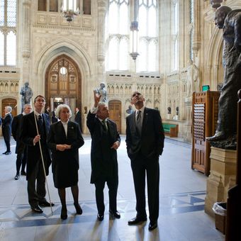 La sculpture en bronze pèse 451 kilogrammes et se trouve près d'autres statues d'anciens premiers ministres dans le Members' Lobby du Palais de Westminster.