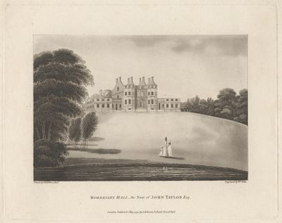 La maison a été construite en 1757 par John Taylor I, un fabricant de boutons de Birmingham, remplaçant un ancien manoir médiéval documenté sous le nom de Bordesleie en 1175. La structure s'est maintenue pendant environ 80 ans avant d'être détruite puis démontée en 1840.