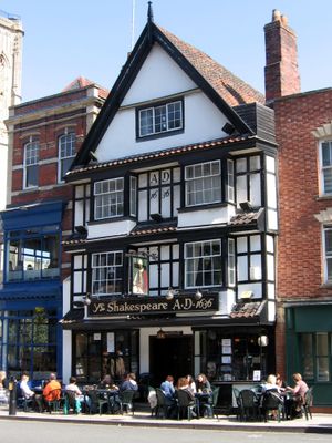 Le Shakespeare Inn est un pub classé au grade II sur Victoria Street, avec une structure à colombages et de hauts plafonds qui reflètent ses origines du 17e siècle. Une cour avec jardin offre des places assises en plein air pour les clients cherchant une atmosphère informelle.