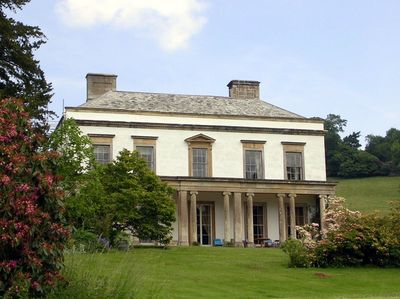 Bagborough House est une demeure en pierre dotée de cinq colonnes ioniques sur sa facade sud, donnant sur des jardins aménagés et un potager clos. La facade à colonnes constitue le point focal architectural principal, tandis que les jardins environnants sont divisés en sections formelles.