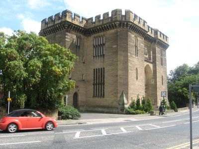 The Court House est un bâtiment de style gothique fortifié à Morpeth avec un bloc frontal carré massif et des tours carrées latérales. Une section absidiale octogonale ajoute une forme distinctive à la structure générale du bâtiment.