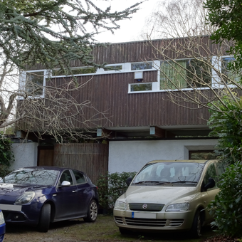 Les architectes Gerald Beech et Dewi-Prys Thomas ont conçu Cedarwood en 1959 comme prototype de maisons familiales produites en série, terminant la construction en 1960.