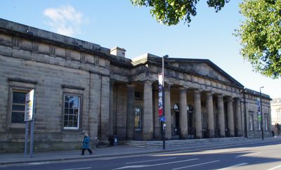 Le tribunal du Sheriff de Perth présente une architecture néoclassique avec une colonnade de dix colonnes doriques soutenant un entablement.