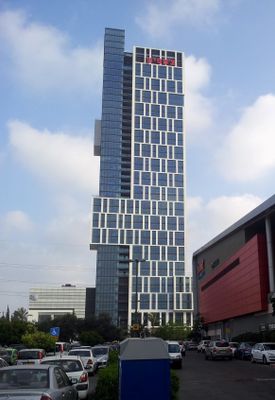 La tour a été construite en 2013 sur le site d'anciens concessionnaires Skoda et Audi. À son achèvement, c'était le cinquième plus haut immeuble d'Israël à l'époque.