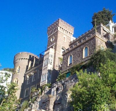 Le Château Aselmeyer présente des tours jumelles recouvertes de pierre vésuvienne et se dresse entre la colline du Vomero et le quartier Amedeo de Naples.