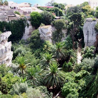 La Latomia dei Cappuccini est une ancienne carriere de calcaire a Syracuse presentant des murs de pierre profonds et des chambres interconnectees gravees sur plusieurs niveaux d'excavation. Les diverses profondeurs de ces creusements revelent l'ampleur de l'extraction de pierre qui s'est deroulee pendant de nombreux siecles.