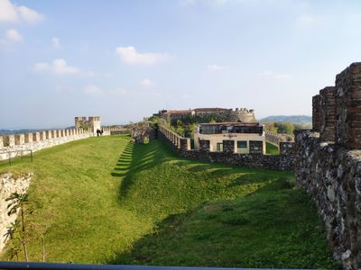 La forteresse a ete construite autour de l'an 900 et a servi de bastion militaire pour plusieurs souverains, notamment la famille Visconti et la Republique de Venise. Elle est restee une position defensive importante sous le controle venitien pendant plusieurs siecles.