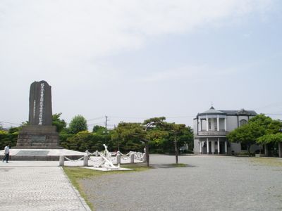 Le monument central porte des inscriptions en japonais et en anglais, créé par l'Association des Amis d'Amérique en 1901 pour marquer cette étape diplomatique.
