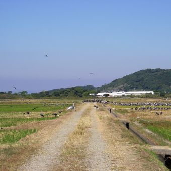 Les terres de migration couvrent 245 hectares de rizières dans la préfecture de Kagoshima où 10.000 grues à capuchon et 3.000 grues à cou blanc se rassemblent d'octobre à mars.