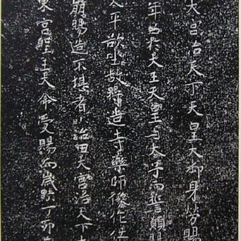 Inscription on the halo of the statue of Yakushi Nyorai, Inscription bouddhique au Temple Horyu-ji, Ikaruga, Japon