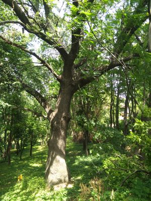 Quercus robur in the Dendrological Garden of Chișinău, old tree of Moldova