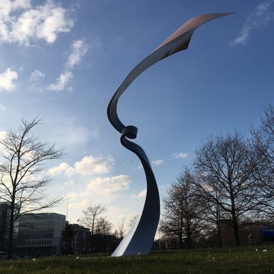Le Monument International Homomonument de La Haye est une structure en acier édifiée sur une fondation en granit dans un espace public de la ville. La structure utilise des éléments métalliques en différentes teintes de couleur et est accompagnée de plaques informatives.