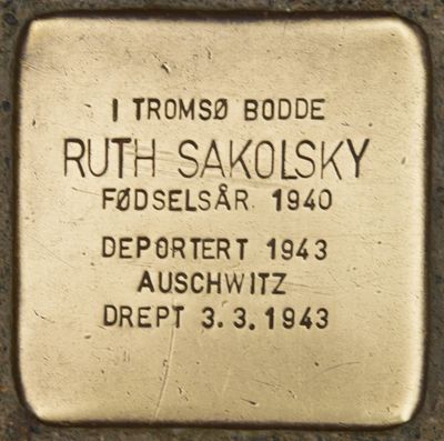 Stolperstein à la mémoire de Ruth Sakolsky, stolperstein in Tromsø, Noorwegen