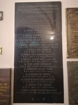 Commemorative plaque dedicated to the fallen and murdered Franciscans from the Province of the Assumption of the Blessed Virgin Mary in Katowice, plaque in Katowice, Poland