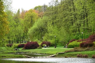 Arkadia Park est un espace vert urbain du district de Mokotów qui s'étend sur plusieurs rues avec trois étangs interconnectés comme caractéristiques distinctives. Une voie navigable relie ces étangs et s'écoule vers la rivière Vistule, créant des zones paysagères distinctes dans toute la propriété.