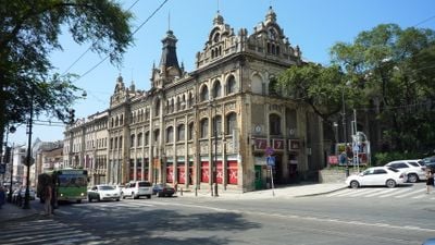 Le Vladivostok GUM est un bâtiment de trois étages en brique situé au centre-ville avec des détails Art Nouveau ornés. La structure affiche des éléments architecturaux raffinés, notamment des corniches décoratives, des arrangements de fenêtres structurés et une ornementation de façade élaborée typique de la conception commerciale du début du 20e siècle.