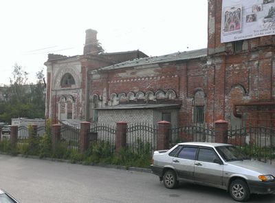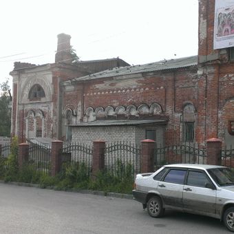 Кирпичная ограда с двумя воротами и коваными решетками (Городец)