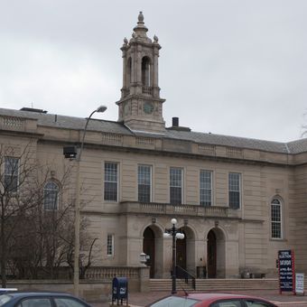 La Bibliothèque Mémorial Robbins et l'Hôtel de Ville forment le centre du district, avec des jardins conçus par R. Clipston Sturgis et modifiés par les frères Olmsted.