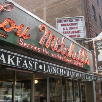 Lou Mitchell's est un diner de Chicago doté de facades en aluminium d'origine, de carrelage en terrazzo noir et blanc, et de comptoirs multi-faces du milieu du vingtième siècle. Le restaurant propose le petit-déjeuner et le déjeuner avec des classiques américains comme les oeufs, les crêpes et les sandwichs.